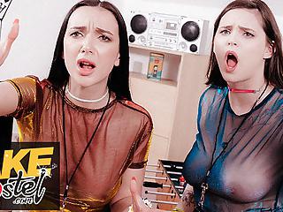 Stiefschwester mit großen Titten leckt und fickt seinen Arsch